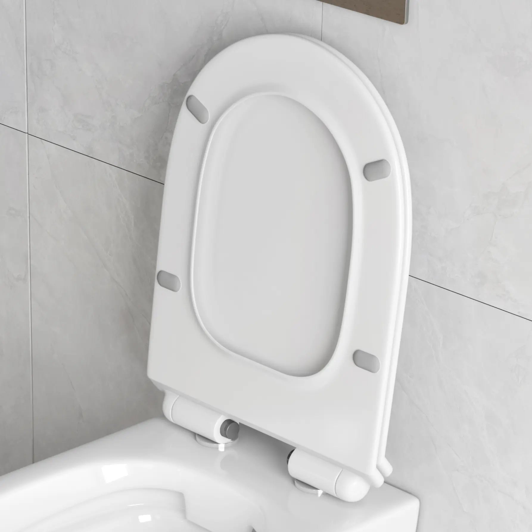 Soft-close toilet seat designed for the Hampton Wall-hung Elongated Toilet. Durable, stable, and easy to install. This accessory is exclusively compatible with model ERI-WT421 for a perfect fit.