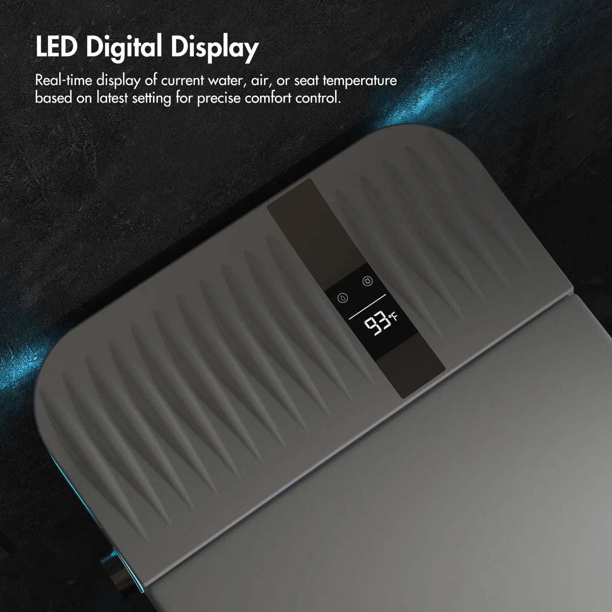 Intuitive Controls & Display: Allows seamless operation via the included wall-mount remote or sleek side dial, while the crisp LED screen integrated directly into the lid displays real-time temperature settings.