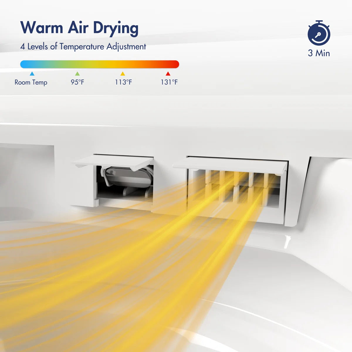 Warm Air Drying: Emits a gentle, temperature-adjustable stream of warm air to thoroughly dry you after washing, significantly reducing reliance on toilet paper for a more eco-friendly routine.