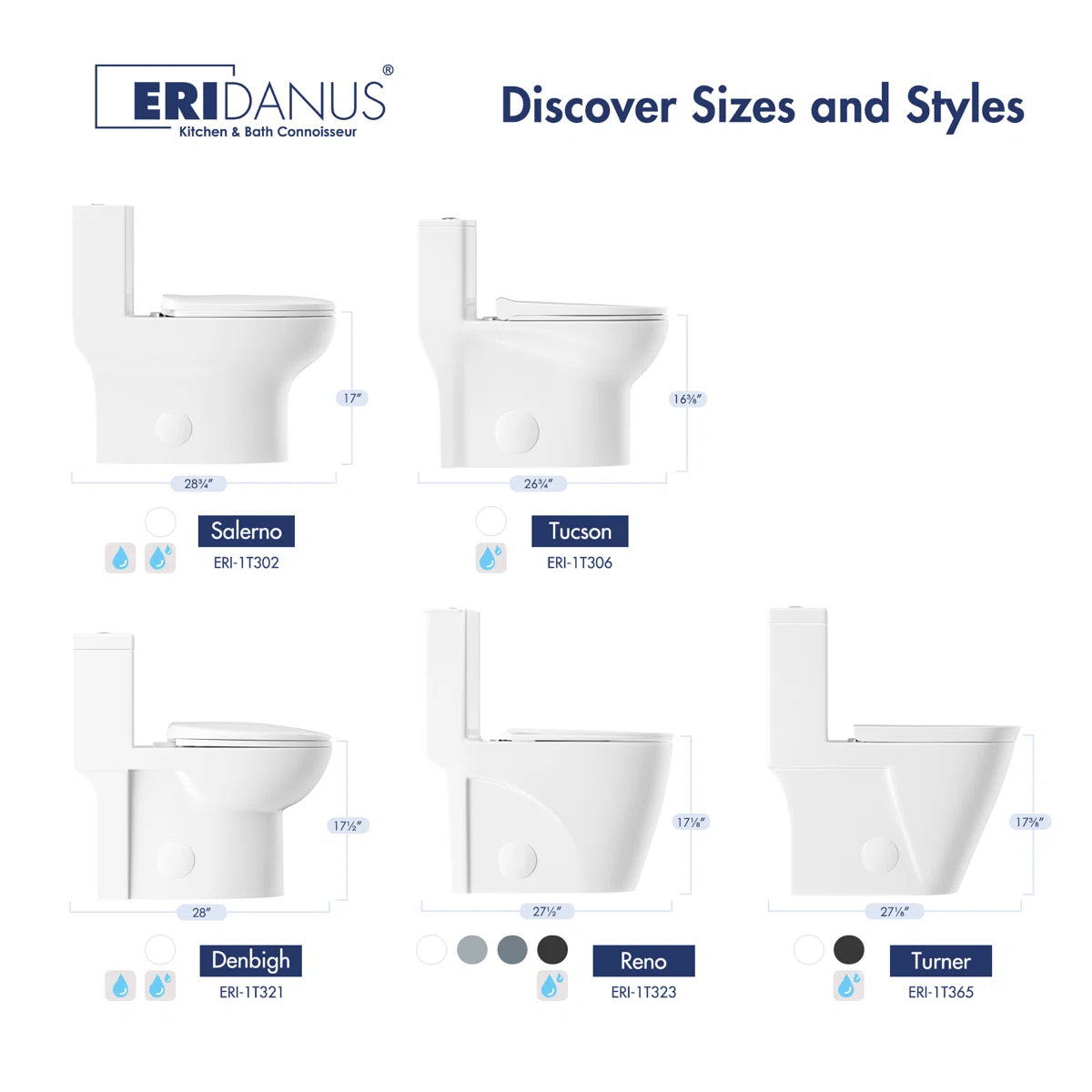 Optional Flush Controls: Choose side single-flush (ERI-1T321S) or top dual-flush (ERI-1T321) button layout.