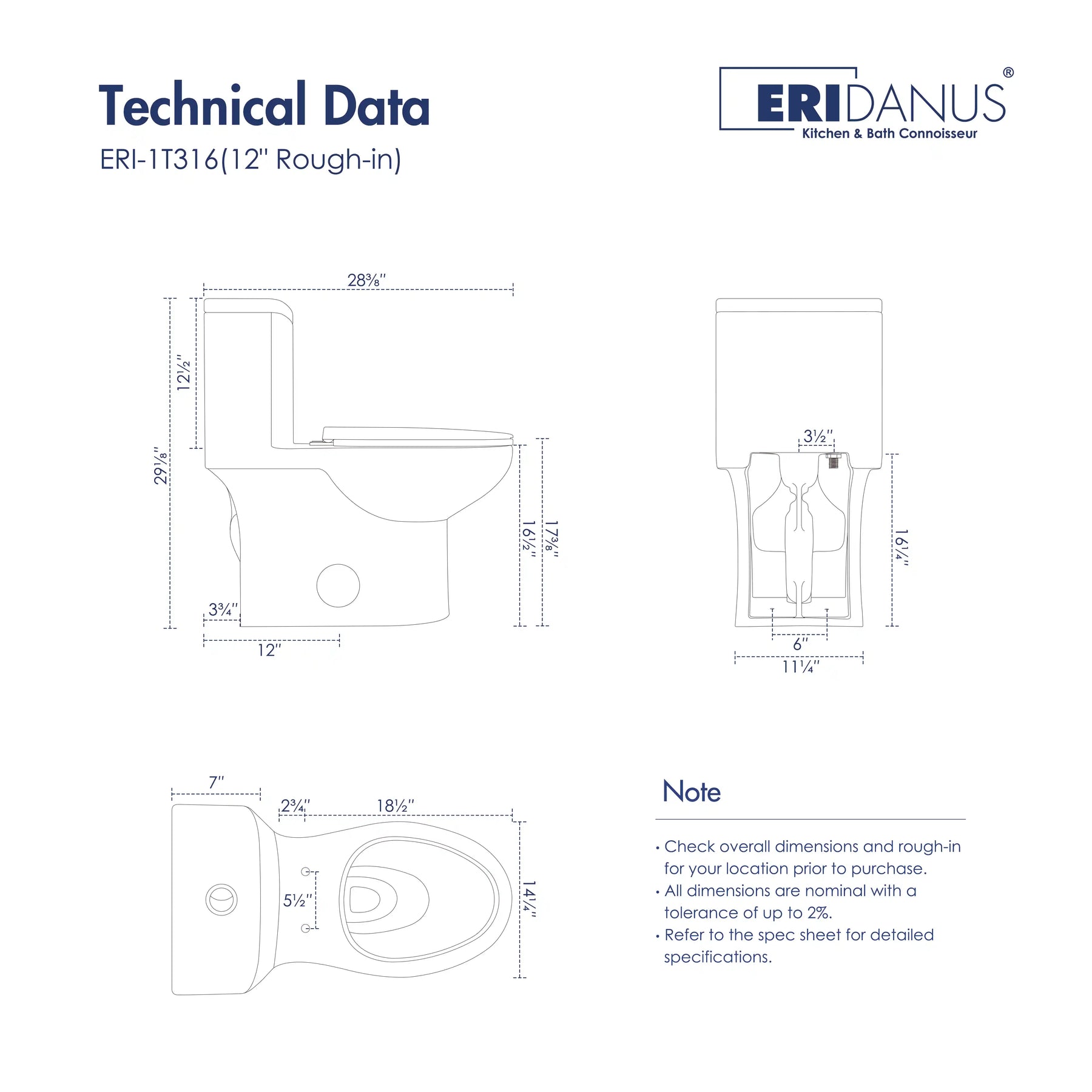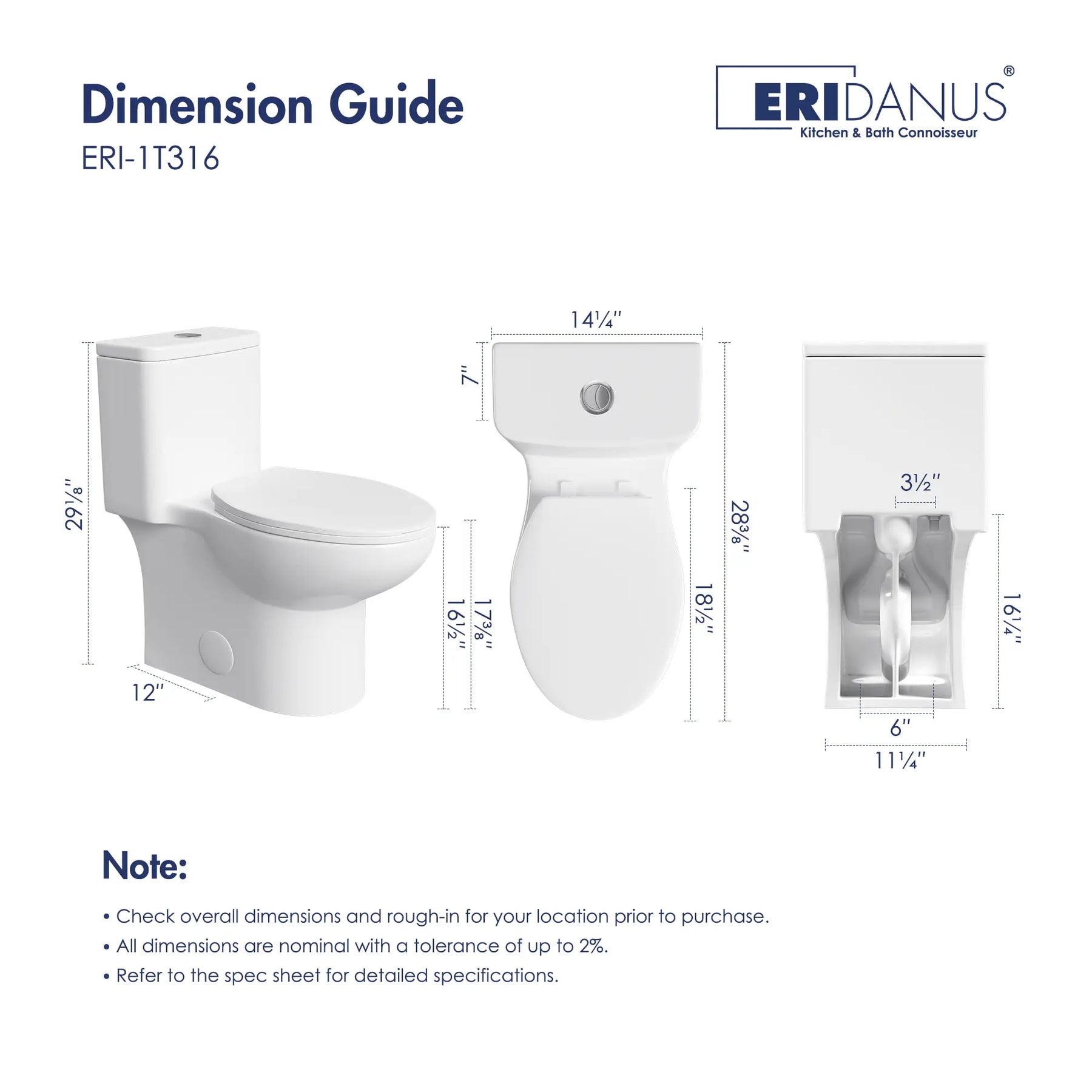 ERI-1T316 — Glossy White Dual Flush (1.1/1.6 GPF) for a timeless, versatile finish suitable for any décor.